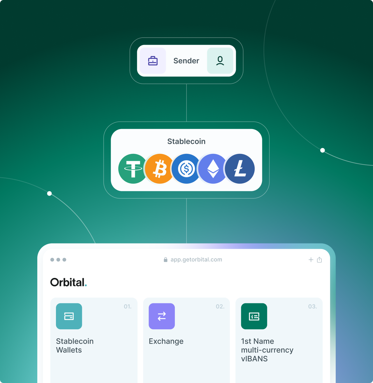 Receive, exchange and settle all major stablecoins, traditional currencies and 80+ exotic currencies interchangeably - through one powerful platform. Engage with your global payments world through the Orbital Platform available via: Web Platform, API or OTC Desk